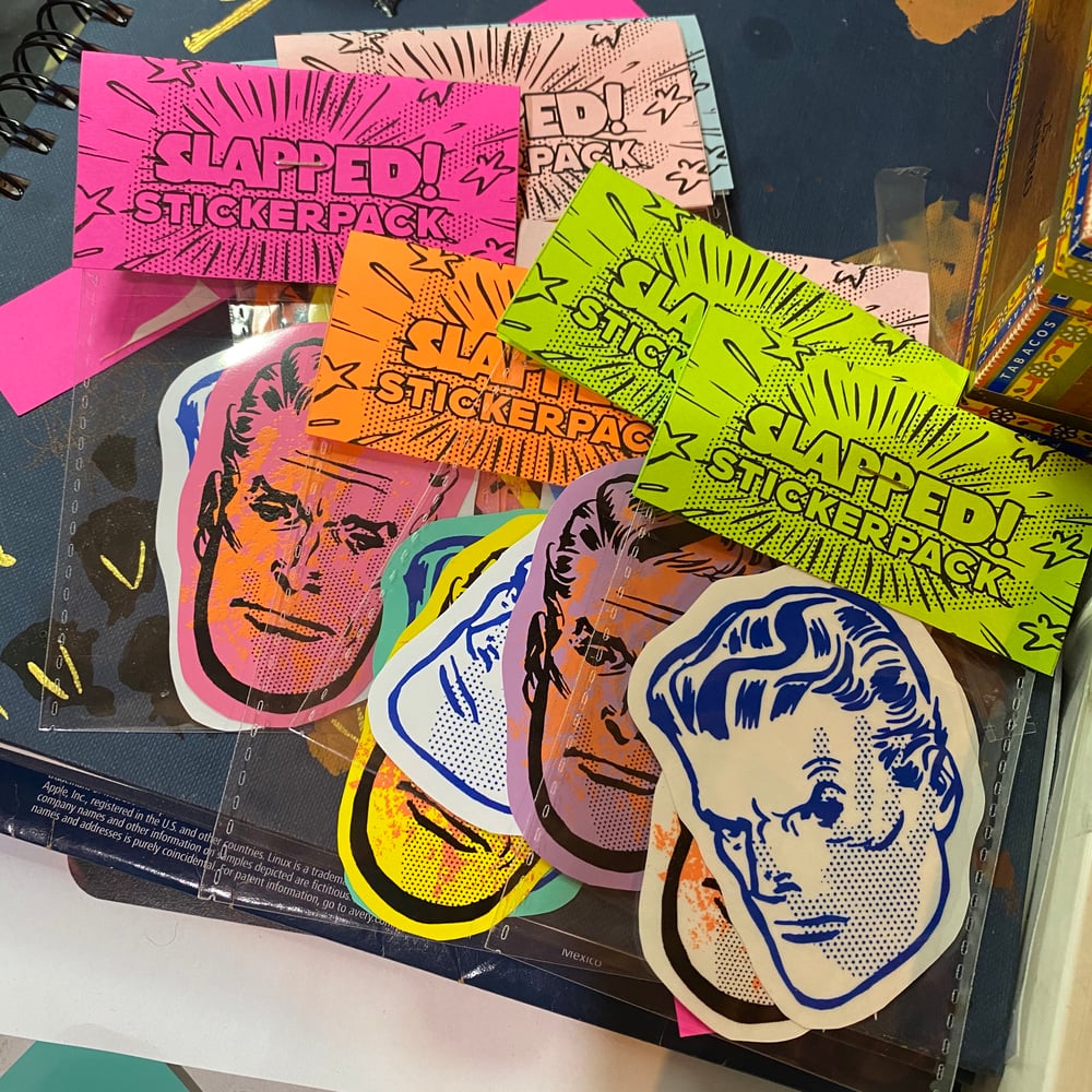 Get slapped! You see before you some of the best vinyl screen printed stickers in the world. Designed from vintage how-to-cartoon manual from 1946, you get two hand-cut stickers per pack. Sticker and ink colors will vary, the header card too. Printed by the Gang at Rx Gang Run. Get these while they are fresh!